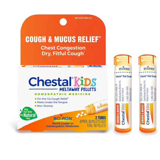 COUGH & MUCUS RELIEF* Chestal Meltaway Pellets for Kids, Homeopathic Medicine for Cough & Mucus Relief, 2 Tubes, Boiron