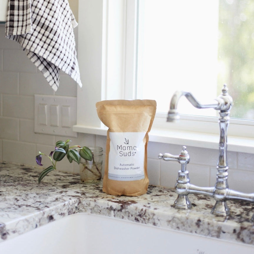 Tired of etched glassware, white film and not so sparkling dishes? MamaSuds Automatic Dishwasher Powder is made with safe ingredients, vegan, it’s eco-friendly, it’s 100% biodegradable…. And it WORKS!
